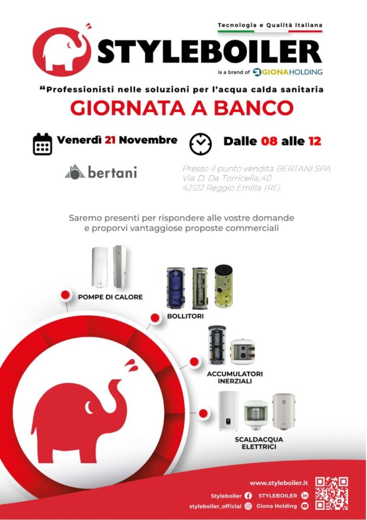 EventiGiornata a banco Styleboiler presso BERTANI di Reggio Emilia (RE) – 21/11/2025 17 Nov Giornata a banco Styleboiler presso BERTANI di Reggio Emilia (RE) – 21/11/2025 Giornata a banco Styleboiler presso UNICOM di Modena – 19/11/2025