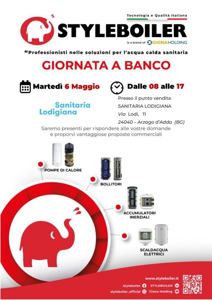 EventiGiornata a banco Styleboiler presso SANITARIA LODIGIANA di Arzago d’Adda – 06/05/2025 06 Mag Giornata a banco Styleboiler presso SANITARIA LODIGIANA di Lodi – 16/04/2025 ELIOS PRO – Lo Scaldacqua Ultrasottile di Styleboiler